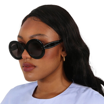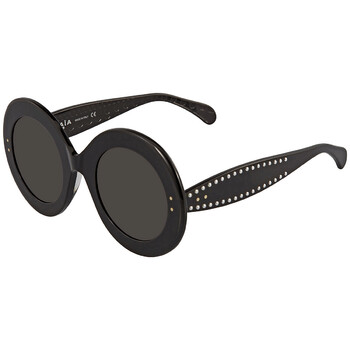 Alaia Sunglasses. Series Azzedine. Series number: AA0012S. Color code: 001. Shape: Round. Lens Width: 50 mm. Lens Bridge: 26 mm. Arm Length: 145 mm. 100% UV protection. Frame Material: Acetate. Frame Color: Black. Lenses Type: Grey. Rim Style: Full-Rim. UPC/EAN code: 889652184319. Azzedine Alaia Grey Round Ladies Sunglasses AA0012S-001 50.