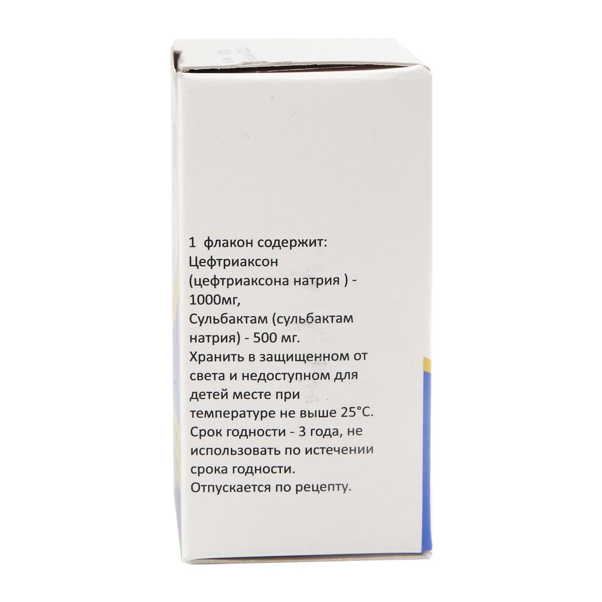 ცეფტრიაქსონი 1,0გ (ნატრიუმის ცეფტრიაქსონის სახით), სულბაქტამი 0,5გ (ნატრიუმის სულბაქტამის სახით).