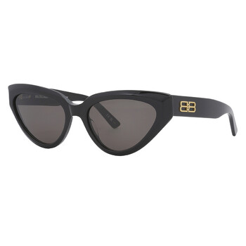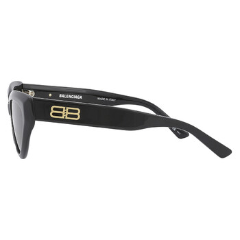 Balenciaga Sunglasses. Series number: BB0270S. Color code: 001. Shape: Cat Eye. Lens Width: 56 mm. Lens Bridge: 18 mm. Arm Length: 140 mm. 100% UV protection. Frame Material: Recycled Acetate. Frame Color: Black. Lenses Type: Grey. Rim Style: Full-Rim. UPC/EAN code: 889652417387. Balenciaga Grey Cat Eye Ladies Sunglasses BB0270S 001 56.