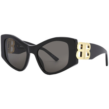 Balenciaga Sunglasses. Series number: BB0287S. Color code: 001. Shape: Cat Eye. Lens Width: 55 mm. Lens Bridge: 19 mm. Arm Length: 130 mm. 100% UV protection. Non-Polarized. Frame Material: Recycled Acetate. Frame Color: Black. Lenses Type: Grey. Rim Style: Full-Rim. UPC/EAN code: 889652437576. Balenciaga Grey Cat Eye Ladies Sunglasses BB0287S 001 55.