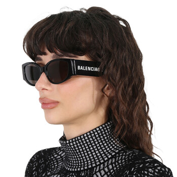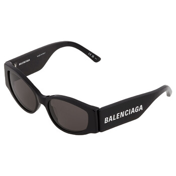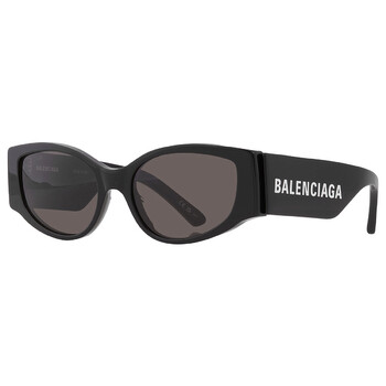 Balenciaga Sunglasses. Series number: BB0258S. Color code: 007. Shape: Irregular. Lens Width: 56 mm. Lens Bridge: 18 mm. Arm Length: 145 mm. 100% UV protection. Non-Polarized. Frame Material: Recycled Acetate. Frame Color: Black. Lenses Type: Grey. Rim Style: Full-Rim. UPC/EAN code: 889652445199. Balenciaga Grey Irregular Ladies Sunglasses BB0258S 007 56.