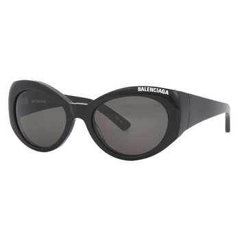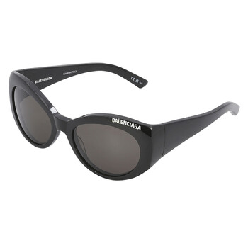 Balenciaga Sunglasses. Series number: BB0267S. Color code: 001. Shape: Oval. Lens Width: 57 mm. Lens Bridge: 20 mm. Arm Length: 135 mm. 100% UV protection. Frame Material: Recycled Acetate. Frame Color: Black. Lenses Type: Grey. Rim Style: Full-Rim. UPC/EAN code: 889652416984. Balenciaga Grey Oval Ladies Sunglasses BB0267S 001 57.