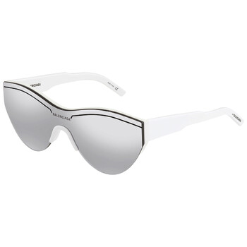 Balenciaga Sunglasses. Series number: BB0004S. Color code: 005. Shape: Cat Eye. Lens Width: 99 mm. Lens Bridge: 1 mm. Arm Length: 145 mm. 100% UV protection. Non-Polarized. Frame Material: Acetate. Frame Color: White. Lenses Type: Silver. Rim Style: Semi-Rimless. UPC/EAN code: 889652273372. Balenciaga Silver Cat Eye Unisex Sunglasses BB0004S 005 99.