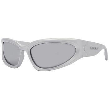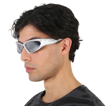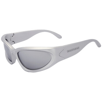 Balenciaga Sunglasses. Series number: BB0157S. Color code: 004. Shape: Wrap. Lens Width: 65 mm. Lens Bridge: 17 mm. Arm Length: 125 mm. 100% UV protection. Non-Polarized. Frame Material: Acetate. Frame Color: Silver. Lenses Type: Silver Mirror. Rim Style: Full-Rim. UPC/EAN code: 889652342504. Balenciaga Silver Mirror Wrap Men's Sunglasses BB0157S 004 65.