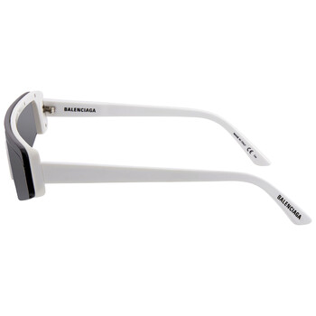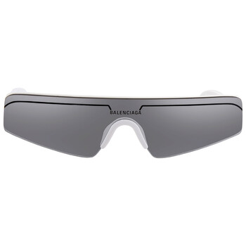 Balenciaga Sunglasses. Series number: BB0003S. Color code: 002. Shape: Shield. Lens Width: 99 mm. Lens Bridge: 1 mm. Arm Length: 140 mm. 100% UV protection. Frame Material: Acetate. Frame Color: White. Lenses Type: Silver. Rim Style: Full-Rim. UPC/EAN code: 889652206486. Balenciaga Silver Shield Unisex Sunglasses BB0003S 002 99.
