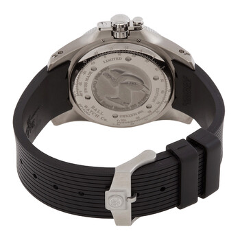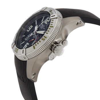 Silver-tone titanium case with a black rubber strap. Uni-directional rotating silver-tone titanium bezel. Black dial with silver-tone hands and index-Arabic numeral hour markers. Arabic numeral marks appear at the 3, 6, 9 and 12 o'clock positions. Arabic numeral minute markers (at 5 minute intervals). Dial Type: Analog. Luminescent hands and markers. One subdial displaying: thermometric indication. Ball Calibre 9018 Automatic movement, based upon ETA2892-A2, containing 21 Jewels, bitting at 28800 vph, and has a power reserve of approximately 42 hours. Scratch resistant sapphire crystal. Screw down crown. Solid case back. Round case shape, case size: 42 mm. Tang clasp. Water resistant at 300 meters / 1000 feet. Functions: date, hour, minute, second, thermometer. Engineer Hydrocarbon Series. Dive watch style. Watch label: Swiss Made. Ball Engineer Hydrocarbon Automatic Black Dial Men's Watch DT1026A-PAJ-BKC.