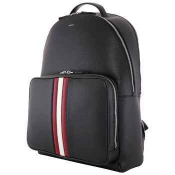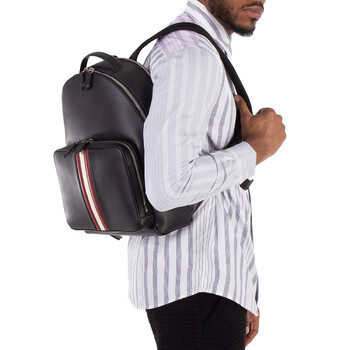 Bally Men's Wallets. SKU: MAK03Q-I946P. Material: Leather;Polyamide;Polyester. Color: Black/Red/Bone/Pall. Size: H:43cm x L:30cm x D:11cm. Bally Mythos Vertical Stripe Leather Backpack. This backpack has two compartments: one with a zippered pocket and two open pockets, and the other with laptop pockets. 91% Recycled bovine Leather, 6% Recycled Polyester, 6% Recycled Polyamide.