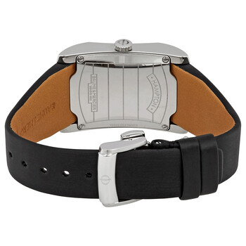 Stainless steel case with a black satin strap. Fixed stainless steel bezel set with diamonds. Black dial with silver-tone hands and Arabic numeral hour markers. Minute markers around the outer rim. Dial Type: Analog. Date display at the 3 o'clock position. Quartz movement. Scratch resistant mineral crystal. Pull / push crown. Solid case back. Square case shape. Case dimensions: 40 mm x 27 mm. Case thickness: 10.2 mm. Band width: 21 mm. Band length: 7 inches. Deployment clasp with a push button release. Water resistant at 50 meters / 165 feet. Functions: hour, minute, second. Luxury watch style. Watch label: Swiss Made. Item Variations: MOA10022, M0A10022, 10022. Baume and Mercier Hampton Milleis Black Dial Leather Ladies Watch 10022.