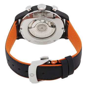 Black stainless steel case with a black leather strap. Fixed black stainless steel bezel. Black dial with silver-tone hands and index hour markers. Minute markers around the outer rim. Dial Type: Analog. Luminescent hands and markers. Date display at the 6 o'clock position. Chronograph - two sub-dials displaying: 60 second and 30 minute. Automatic movement. Scratch resistant sapphire crystal. Round case shape, case size: 42 mm. Functions: chronograph, date, hour, minute, second. Capeland Series. Casual watch style. Watch label: Swiss Made. Baume et Mercier Capeland Chronograph Automatic Black Dial Men's Watch 10452.