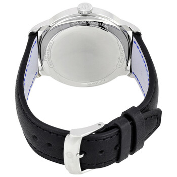 Stainless steel case with a black (calfskin) leather strap. Fixed stainless steel bezel. White dial with silver-tone rhodium-plated leaf-style hands and index hour markers. Roman numerals mark the 3, 6, 9 and 12 o'clock positions. Minute markers around the outer rim. Dial Type: Analog. Date display at the 3 o'clock position. Sellita caliber SW200 automatic movement, containing 26 Jewels, bitting at 28800 vph, and has a power reserve of approximately 38 hours. Scratch resistant sapphire crystal. Pull / push crown. Solid case back. Round case shape. Case size: 42 mm. Case thickness: 9 mm. Band width: 22 mm. Tang clasp. Water resistant at 50 meters / 165 feet. Functions: date, hour, minute, second. Classima Series. Luxury watch style. Watch label: Swiss Made. Item Variations: A10332, 10332. Baume et Mercier Classima Automatic Men's Watch MOA10332.