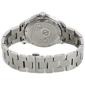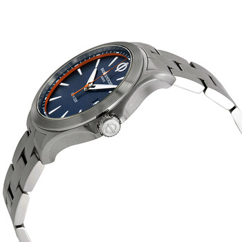 Stainless steel case with a stainless steel bracelet. Fixed stainless steel bezel. Blue dial with luminous rhodium-plated hands and index hour markers. Minute markers around the outer rim. Dial Type: Analog. Luminescent hands and markers. Date display at the 3 o'clock position. Ronda caliber 6003D quartz movement. Scratch resistant sapphire crystal. Solid case back. Round case shape. Case size: 42 mm. Case thickness: 9.55 mm. Triple fold over clasp. Water resistant at 100 meters / 330 feet. Functions: date, hour, minute, second. Dress watch style. Watch label: Swiss Made. Baume et Mercier Clifton Blue Dial Men's Watch 10413.