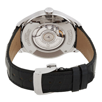 Silver-tone stainless steel case with a leather strap. Fixed silver-tone stainless steel bezel. Champagne dial with blue hands and index-Arabic numeral hour markers. Minute markers around the outer rim. Dial Type: Analog. Automatic movement. Scratch resistant sapphire crystal. Pull / push crown. Transparent case back. Round case shape, case size: 43 mm, case thickness: 12.5 mm. Band width: 21 mm, band length: 8 inches. Deployment with push button release clasp. Water resistant at 50 meters / 165 feet. Functions: date, day, hour, minute, second, power reserve indicator. Clifton Series. Luxury watch style. Baume et Mercier Clifton Champagne Dial Men's Watch M0A10189.