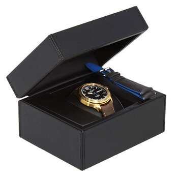 Finished bronze case with a black (calfskin) leather (blue backed) strap. Uni-directional rotating finished bronze bezel. Black opaline dial with luminous bronze hands and index hour markers. Minute markers around the outer rim. Dial Type: Analog. Luminescent hands and markers. Date display at the 3 o'clock position. ETA caliber 2892-A2 automatic movement, based upon ETA 2890, containing 21 Jewels, bitting at 28800 vph, and has a power reserve of approximately 42 hours. Scratch resistant sapphire crystal. Solid case back. Round case shape. Case size: 42 mm. Case thickness: 10.3 mm. Band width: 20 mm. Tang clasp. Water resistant at 100 meters / 330 feet. Functions: date, hour, minute, second. Clifton Club Series. Casual watch style. Watch label: Swiss Made. Baume et Mercier Clifton Club Bronze Automatic Black Dial Men's Watch 10500.