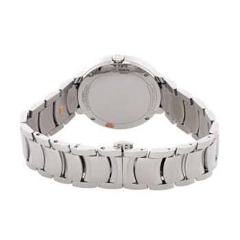 Stainless steel case with a two-tone stainless steel bracelet. Fixed rose gold-tone gold bezel. Mother of pearl dial with diamond hour markers. Dial Type: Analog. Swiss Made Quartz quartz movement. Scratch resistant sapphire crystal. Pull / push crown. Solid case back. Round case shape, case size: 34 mm, case thickness: 8.13 mm. Band width: 17.3 mm, band length: 7 inches. Deployment with push button release clasp. Water resistant at 50 meters / 165 feet. Additional Info: hours, minutes. Promesse Series. Luxury watch style. Baume et Mercier Promesse Diamond Mother of Pearl Dial Ladies Watch M0A10264.