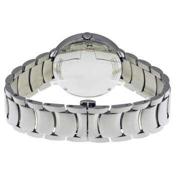Stainless steel case with a stainless steel bracelet. Fixed stainless steel bezel. Mother of pearl dial with silver-tone hands and diamond hour markers. Roman numerals mark the 3, 6, 9 and 12 o'clock positions. Dial Type: Analog. Quartz movement. Scratch resistant sapphire crystal. Pull / push crown. Solid case back. Round case shape. Case size: 34 mm. Case thickness: 8 mm. Band width: 18 mm. Deployment clasp. Water resistant at 30 meters / 100 feet. Functions: hour, minute. Dress watch style. Watch label: Swiss Made. Item Variations: MOA10178, M0A10178, 10178. Baume and Mercier Promesse Mother of Pearl Dial 34mm Ladies Watch 10178.