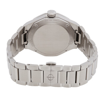 Stainless steel case with a stainless steel bracelet. Fixed stainless steel bezel. Azure blue dial with luminous silver-tone hands and index hour markers. Roman numerals appear at the 6 and 12 o'clock positions. Dial Type: Analog. Luminescent hands and markers. Date display at the 3 o'clock position. Quartz movement. Scratch resistant sapphire crystal. Solid case back. Dodecagonal case shape. Case size: 36 mm. Fold over clasp. Water resistant at 50 meters / 165 feet. Functions: date, hour, minute, second. Riviera Series. Sport watch style. Watch label: Swiss Made. Baume et Mercier Riviera Quartz Blue Dial Ladies Watch MOA10612.