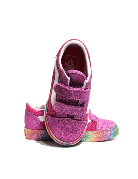VANS - TODDLER GLITTER RAINGLOW OLD SKOOL HOOK AND LOOP SHOES