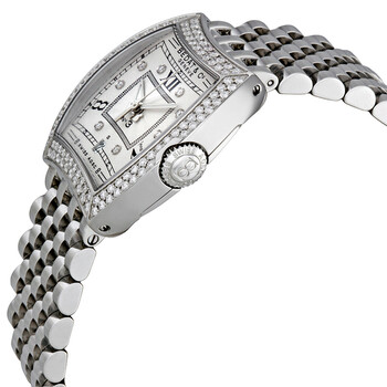 Stainless steel case with a stainless steel bracelet. Fixed stainless steel set with 113 diamonds bezel. White dial with silver-tone hands and diamond hour markers. Roman numerals mark the 4 and 12 o'clock positions. minute markers appear around the inner rim. Dial Type: Analog. Luminescent hands. Date display at the 6 o'clock position. Automatic movement. Eta 83/4 2000/1 engine. Scratch resistant sapphire crystal. Fluted steel crown. Solid case back. Case diameter: 28 mm. Case thickness: 9.5 mm. Hidden deployment clasp. Water resistant at 50 meters / 165 feet. Functions: date, hour, minute, second. Additional Info: date displays at 6 o'clock position. Dress watch style. Watch label: Swiss Certified Label of Origin. Bedat No. 3 Diamond Ladies Watch 314.031.109.