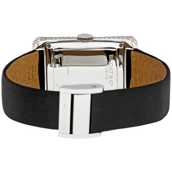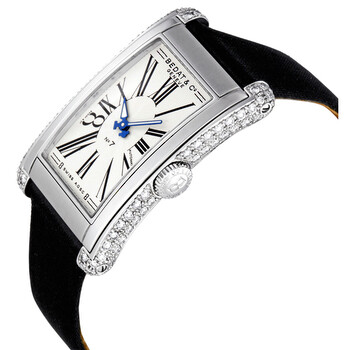 Stainless steel case with a red leather strap. Fixed stainless steel bezel set with 93 diamonds. White sunburst guilloche dial with blued steel luminous hands and Roman numeral hour markers. Dial Type: Analog. Mechanical automatic movement. Scratch resistant sapphire crystal. Thunmbtack crown. Fold over clasp. Water resistant at 50 meters / 165 feet. Functions: hours, minutes. Luxury watch style. Watch label: Swiss Made. Bedat No. 7 White Sunburst Dial Red Leather Strap Ladies Watch 788.030.101.