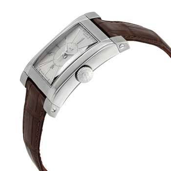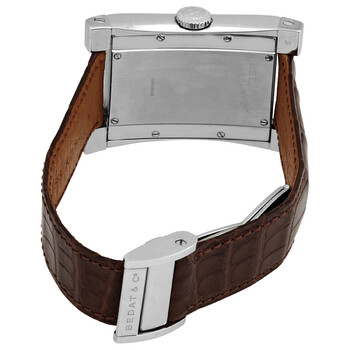 Stainless steel case with a brown leather strap. Fixed stainless steel bezel. Silver dial with luminous hands and index hour markers. Minute markers around an inner ring. Dial Type: Analog. Luminescent hands. Date display at the 6 o'clock position. ETA caliber 2000-1 automatic movement, based upon ETA 2892-A2, containing 20 Jewels, bitting at 28800 vph, and has a power reserve of approximately 40 hours. Scratch resistant sapphire crystal. Pull / push crown. Solid case back. Rectangle case shape. Case dimensions: 31.2 mm x 45.5 mm. Case thickness: 10.5 mm. Fold over deployment clasp. Water resistant at 50 meters / 165 feet. Functions: date, hour, minute, second. No. 7 Series. Luxury watch style. Watch label: Swiss A.O.S.C. Item Variations: 737 010 610, 737-010-610, 737/010/610, 737010610. Bedat No. 7 Silver Dial Steel Brown Leather Men's Watch 737.010.610.