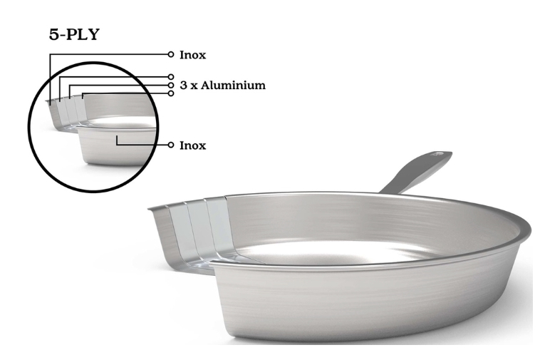 Beka, 5 ფენიანი ტაფა დამზადებულია მაღალი ხარისხის უჟანგავი ფოლადისა და ალუმინისგან. მისი კონსტრუქცია უზრუნველყოფს სითბოს სწრაფ, ეფექტურ და თანაბარ განაწილებას. იდეალურია ხორცის შესაწვავად, კარამელიზაციისთვის, ხრაშუნა და ოქროსფერი შეფერილობის მისაღებად. 5 ფენიანი კონსტრუქცია ხელს უწყობს საკვების სწრაფად გათბობასა და ტემპერატურის დიდხანს შენარჩუნებას. სწორი კიდეები კი გამოსაყენებელ ზედაპირს 20%-ით ზრდის. აქვს მოსახერხებელი და სადა დიზაინი და მარტივად იწმინდება, ხოლო შედუღებული სახელური ხელს უშლის საკვების ჩარჩენას ღარში. შეგეძლებათ გამოყენება ნებისმიერი ტიპის ქურაზე, ასევე ღუმელში, 200°c-მდე ტემპერატურაზე. რეკომენდებულია ჭურჭლის სარეცხ მანქანაში რეცხვა.