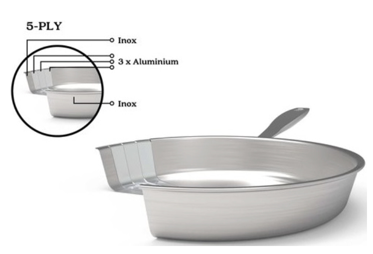 Beka, 5 ფენიანი ტაფა დამხამრე სახელურით დამზადებულია მაღალი ხარისხის უჟანგავი ფოლადისა და ალუმინისგან. მისი კონსტრუქცია უზრუნველყოფს სითბოს სწრაფ, ეფექტურ და თანაბარ განაწილებას. იდეალურია ხორცის შესაწვავად, კარამელიზაციისთვის, ხრაშუნა და ოქროსფერი შეფერილობის მისაღებად. 5 ფენიანი კონსტრუქცია ხელს უწყობს საკვების სწრაფად გათბობასა და ტემპერატურის დიდხანს შენარჩუნებას. სწორი კიდეები კი გამოსაყენებელ ზედაპირს 20%-ით ზრდის. აქვს მოსახერხებელი და სადა დიზაინი და მარტივად იწმინდება, ხოლო შედუღებული სახელური ხელს უშლის საკვების ჩარჩენას ღარში. შეგეძლებათ გამოყენება ნებისმიერი ტიპის ქურაზე, ასევე ღუმელში, 200°c-მდე ტემპერატურაზე. რეკომენდებულია ჭურჭლის სარეცხ მანქანაში რეცხვა.