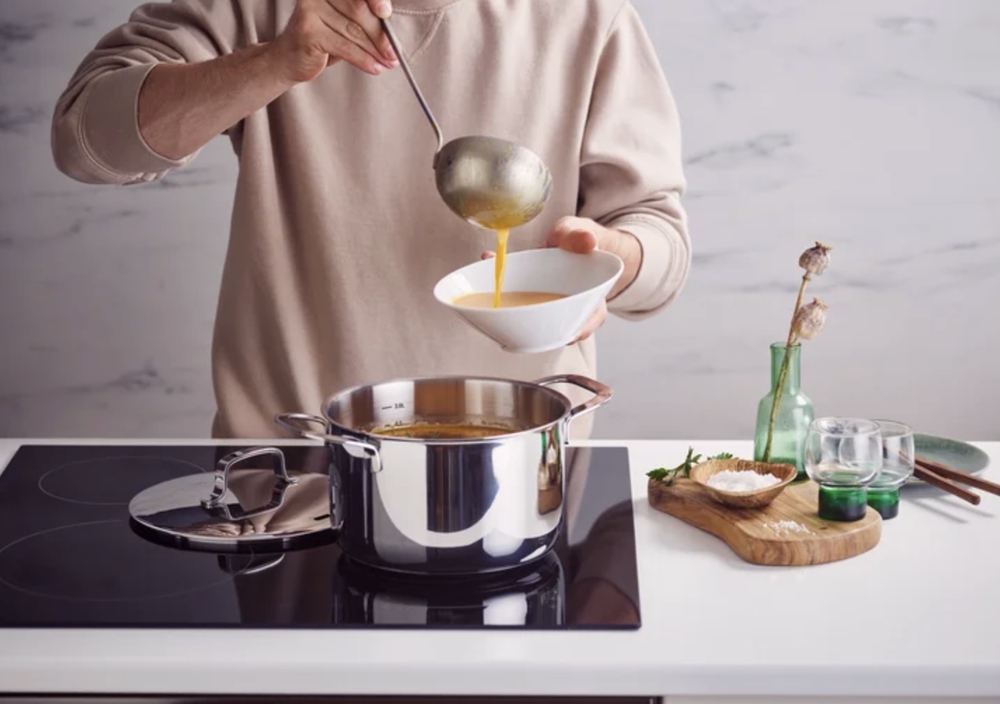 მრავალშრიანი ძირი (3-ply): სპეციალური 3-ფენიანი ძირი უზრუნველყოფს სითბოს თანაბარ განაწილებას და ამცირებს საჭმლის დაწვის რისკს. იდეალურია ხანგრძლივი ხარშვისთვის ან ნელ ცეცხლზე მომზადებისთვის.