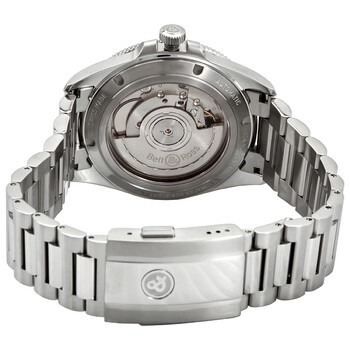 Stainless steel case with a stainless steel bracelet. Uni-directional rotating stainless steel bezel with an inlaid black aluminium ring. Beige dial with luminous black hands and Arabic numeral hour markers. Minute markers around the outer rim. Dial Type: Analog. Luminescent hands. Date display between the 4 and 5 o'clock positions. Bell and Ross calibre BR-CAL.302 automatic movement, based upon Sellita SW300-1, containing 25 Jewels, bitting at 28800 vph, and has a power reserve of approximately 38 hours. Scratch resistant sapphire crystal. Screw down crown. Transparent case back. Round case shape. Case size: 41 mm. Fold over clasp with a safety release. Water resistant at 100 meters / 330 feet. Functions: date, hour, minute, second. Luxury watch style. Watch label: Swiss Made. Bell and Ross Automatic Men's Watch BRV292-BEI-ST-STT.