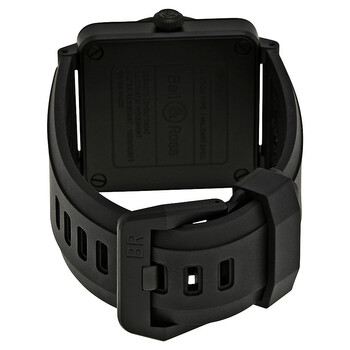 Black carbon ion-plated stainless steel case with a black rubber strap. Fixed black carbon ion-plated bezel. All black dial with black hands and index hour markers. Arabic numerals mark the 3, 6, 9 and 12 o'clock positions. Minute markers around the outer rim. Dial Type: Analog. Luminescent hands and markers. Date display between the 4 and 5 o'clock positions. Bell and Ross calibre BR-CAL.302 automatic movement, based upon Sellita SW300-1, containing 25 Jewels, bitting at 28800 vph, and has a power reserve of approximately 38 hours. Scratch resistant sapphire crystal. Solid case back. Square case shape. Case dimensions: 42 mm x 42 mm. Case thickness: 10 mm. Band width: 24 mm. Band length: 7 inches. Tang clasp. Water resistant at 100 meters / 330 feet. Functions: date, hour, minute, second. Aviation Series. Sport watch style. Watch label: Swiss Made. Item Variations: BR0392-PHANTOM, BR 03 92. Bell and Ross Aviation Phantom All Black Dial Automatic 42MM Men's Watch BR-03-92-PHANTOM.