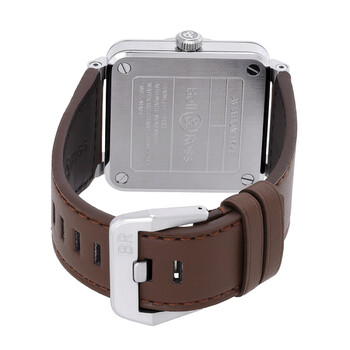 Silver-tone stainless steel case with a brown calfskin leather strap. Fixed silver-tone stainless steel bezel. Brown dial with rose gold-tone hands and index-Arabic numeral hour markers. Arabic numeral marker appears at the 3, 6, 9 and 12 o'clock positions. Minute markers around the outer rim. Dial Type: Analog. Date display between 4 and 5 o'clock position. Bell and Ross Calibre BR-CAL.302 Automatic movement, based upon Sellita SW300-1, containing 25 Jewels, bitting at 28800 vph, and has a power reserve of approximately 38 hours. Scratch resistant sapphire crystal. Solid case back. Square case shape, case size: 41 mm, case thickness: 9.65 mm. Tang clasp. Water resistant at 100 meters / 330 feet. Functions: date, hour, minute, second. Br 03 Golden Heritage Series. Sport watch style. Watch label: Swiss Made. Bell and Ross BR 03 Golden Heritage Automatic Brown Dial Men's Watch BR03A-GH-ST/SCA.