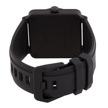 Black stainless steel case with a black rubber strap. Fixed black stainless steel bezel. Black dial with black hands and Arabic numeral hour markers. Minute markers around the outer rim. Dial Type: Analog. Date display between 4 and 5 o'clock position. Automatic movement. Scratch resistant sapphire crystal. Solid case back. Square case shape, case size: 42 mm. Functions: date, hour, minute, second. Additional Info: original box, international warranty card, manual (complete accessories). Br 03 Series. Luxury watch style. Watch label: Swiss Made. Bell and Ross BR 03 Automatic Black Dial Men's Watch BR0392RCOCESRB.
