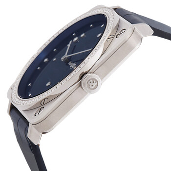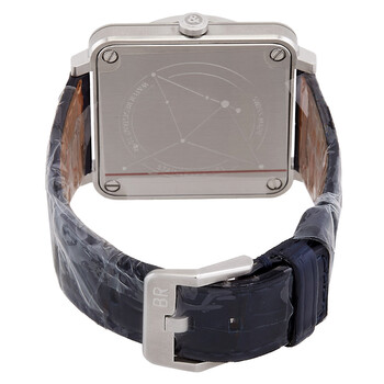Silver-tone stainless steel case with a midnight blue alligator leather strap. Fixed silver-tone bezel with diamond set. Midnight blue with 7 diamonds dial with silver-tone hands. Dial Type: Analog. Bell and Ross Calibre BR-CAL.102 quartz movement. Scratch resistant sapphire crystal. Solid case back. Square case shape, case size: 39 mm x 39 mm. Buckle clasp. Water resistant at 100 meters / 330 feet. Functions: hour, minute, second. Additional Info: bezel set with white diamonds (66 stones totalling 0.99 ct). Br S Diamond Eagle Series. Luxury watch style. Watch label: Swiss Made. Bell and Ross BR S Diamond Eagle Quartz Unisex Diamond Watch BRS-EA-ST-LGD/SCR.