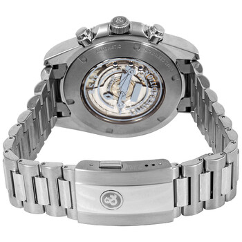 Stainless steel case with a stainless steel bracelet. Bi-directional rotating stainless steel bezel with a black aluminium ring. Black and yellow dial with luminous red hands and Arabic numeral hour markers. Minute markers. Tachymeter matkings around the outer rim. Dial Type: Analog. Luminescent hands and markers. Date display between 4 and 5 o'clock positions. Chronograph - three sub-dials displaying: 60 second, 30 minute and 12 hour. Bell and Ross calibre BR-CAL.301 automatic movement, based upon ETA 2894-2, containing 37 Jewels, bitting at 28800 vph, and has a power reserve of approximately 42 hours. Scratch resistant sapphire crystal. Screw down crown. Transparent case back. Round case shape. Case size: 43 mm. Deployment clasp with a push button release. Water resistant at 100 meters / 330 feet. Functions: chronograph, tachymeter, date, hour, minute, second. Additional Info: limited edition of 999 pieces. Br V3-94 R.s.19 Series. Luxury watch style. Watch label: Swiss Made. Bell and Ross BR V3-94 R.S.19 Chronograph Automatic Men's Watch BRV394-RS19/SST.