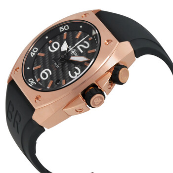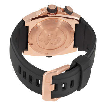 18kt rose gold case with a black rubber strap. 18kt rose gold bezel. Unidirectional internal . Black dial with luminous hands and index hour markers. Arabic numerals mark the 3, 6, 9 and 12 o'clock positions. Dial Type: Analog. Luminescent hands and markers. Date display between the 4 and 5 o'clock positions. Automatic movement. Scratch resistant sapphire crystal. Screw down crown. Solid case back. Case size: 44 mm. Round case shape. Tang clasp. Water resistant at 1000 meters / 3300 feet. Functions: date, hour, minute, second. Luxury watch style. Watch label: Swiss Made. Item Variations: BR02 PINKGOLD CA, BR02.PINKGOLD.CA, BR02PINKGOLDCA. Bell and Ross Marine Automatic Men's Watch BR02-PINKGOLD-CA.