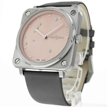 Silver-tone stainless steel case with a black satin strap. Fixed silver-tone stainless steel bezel. Pink (aquila constellation) dial with silver-tone hands and dot hour markers. Dial Type: Analog. Bell and Ross Calibre BR-CAL.102 quartz movement. Scratch resistant sapphire crystal. Pull / push crown. Solid case back. Square case shape, case size: 39 mm. Band length: 7 inches. Tang clasp. Water resistant at 100 meters / 330 feet. Functions: hour, minute. Additional Info: aquila constellation on dial represented by 7 diamonds. Pink Diamond Eagle Series. Luxury watch style. Watch label: Swiss Made. Bell and Ross Pink Diamond Eagle Quartz Ladies Watch BRS-EP-ST/SCR-SAT.