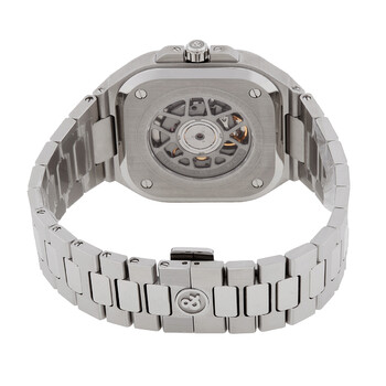 Silver-tone stainless steel case and bracelet. Fixed silver-tone stainless steel bezel. Blue dial with silver-tone hands and index hour markers. Minute markers around the outer rim. Dial Type: Analog. Luminescent hands and markers. Date display at the 3 o'clock position. Bell and Ross Calibre BR-CAL.321 Automatic movement, based upon Sellita SW300-1, containing 25 Jewels, bitting at 28800 vph, and has a power reserve of approximately 38 hours. Scratch resistant sapphire crystal. Screw down crown. Transparent see through case back. Cushion case shape, case size: 41 mm. Fold over clasp with a safety release. Water resistant at 100 meters / 330 feet. Functions: date, hour, minute, second. Additional Info: original box, international warranty card, manual (complete accessories). Br 05 Series. Luxury watch style. Watch label: Swiss Made. Bell and Ross BR 05 Automatic Blue Dial Men's Watch BR05GPBSTSST.