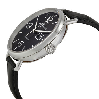Stainless steel case with a black (alligator) leather strap. Fixed stainless steel bezel. Galvanic black dial with luminous hands and index hour markers. Arabic numerals mark the 6, 9 and 12 o'clock position. Dial Type: Analog. Luminescent hands and markers. Date display at the 3 o'clock position. Caliber BR-CAL.309 automatic movement with a 42-hour power reserve. Scratch resistant sapphire crystal. Pull / push crown. Solid case back. Round case shape.Case size: 45 mm. Case thickness: 12.8 mm. Band width: 22 mm. Tang clasp. Water resistant at 50 meters / 165 feet. Functions: hours, minutes, seconds, date. Ww1 Series. Luxury watch style. Watch label: Swiss Made. Item Variations: BRWW196-BL-ST/SCR. Bell and Ross WW1 Automatic Galvanic Black Dial Men's Watch BRWW196-BL-ST/SCR.