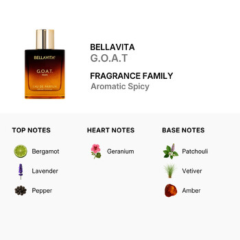 Part of the Aromatic Spicy fragrance family, G.O.A.T opens with a vibrant burst of bergamot, calming lavender, and a touch of pepper for a punch of energy. As it settles, warm heart notes of geranium add a touch of elegance, while base notes of earthy patchouli, smoky vetiver, and rich amber create a lasting impression. This expertly blended Eau de Parfum balances freshness and depth for a scent that commands attention.