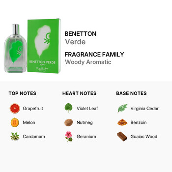 The base notes of earthy Virginia cedar, rich benzoin, and smoky guaiac wood add depth and sophistication, leaving a lasting impression that lingers throughout the day. Whether you're heading to the office or out for the evening, Benetton Verde gives you a confident edge that speaks volumes without saying a word.