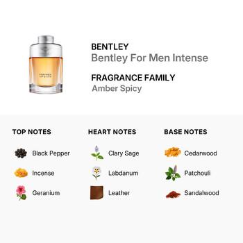 This mens fragrance is not just a perfume; it's a statement. The scent name, Bentley For Men Intense, speaks for itself. It's a fragrance designed for the man who appreciates the finer things in life, and isn't afraid to show it. Just a few sprays of this EDP and you'll feel an increased sense of confidence and charisma.