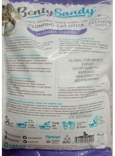 Benty Sandy, კატის ქვიშა ლავანდის არომატით, 5 ლ