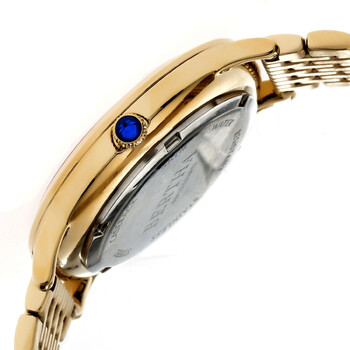 Gold-tone stainless steel case with a gold-tone stainless steel bracelet. Gold-tone bezel. Red dial with gold-tone hands and Arabic numeral hour markers. Dial Type: Analog. Quartz movement. Scratch resistant mineral crystal. Round case shape, case size: 33 mm, case thickness: 9 mm. Band width: 16 mm. Push button deployment clasp. Water resistant at 50 meters / 165 feet. Functions: hour, minute. Casual watch style. Item Variations: BTHBR6803. Bertha Abby Rred Dial Ladies Watch BR6803.