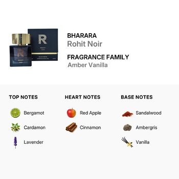 With its alluring aroma, Rohit Noir by Bharara is more than just a scent—it's an experience. The carefully curated ingredients create a mesmerizing symphony of scents that enhance your natural charisma and confidence.