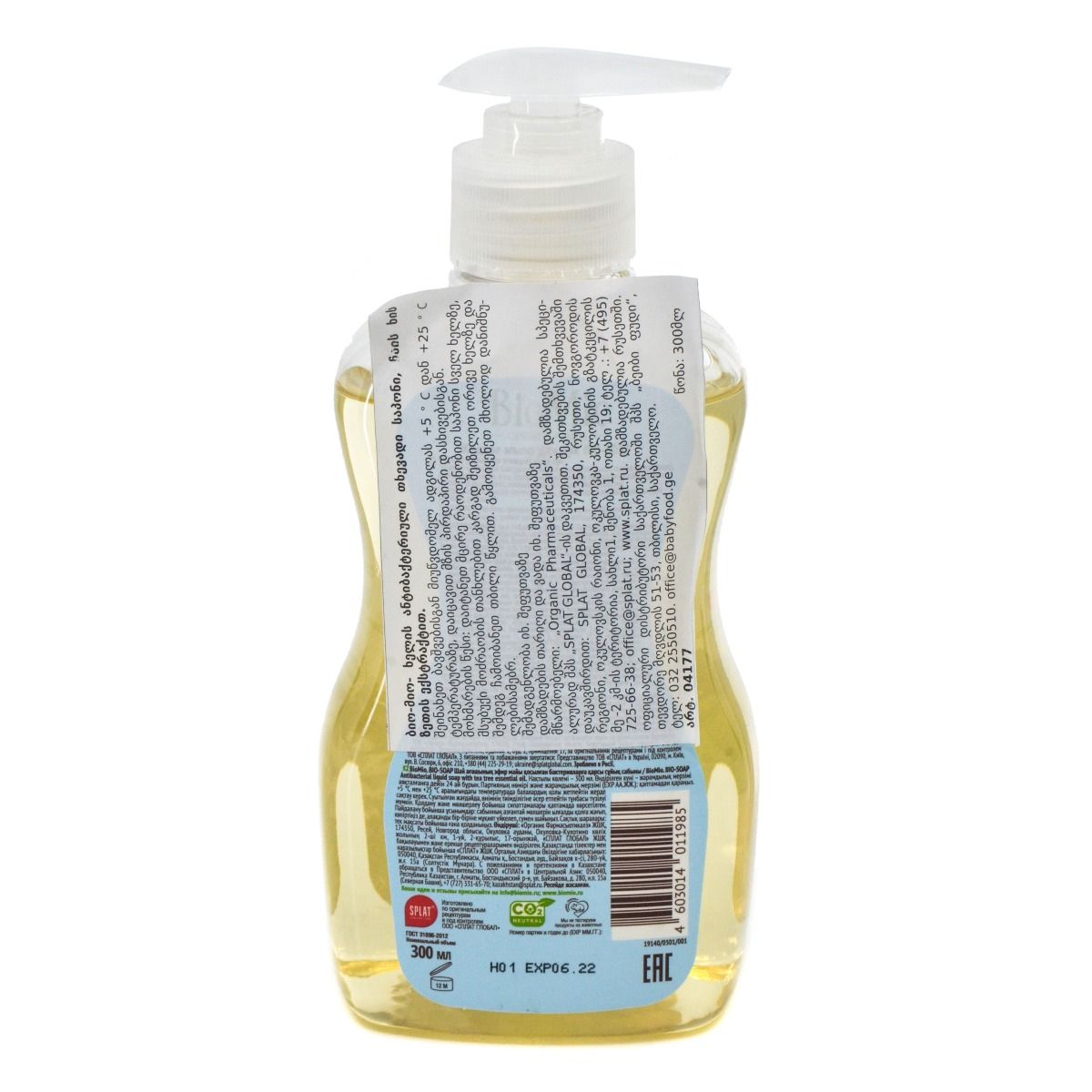 არ შეიცავს: პარაბენებს, სინთეზურ სურფაქტანტებს, ალკოჰოლს, ტრიკლოზანს, EDTA, საღებავებს