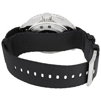 Grey brushed titanium case with a blue canvas NATO strap. Uni-directional rotating coin edge grey titanium bezel with a blue ceramic (count-up elapsed time) ring. Blue dial with luminous silver-tone hands and index hour markers. Arabic numerals mark the 3, 6, 9 and 12 o'clock positions. Minute markers around the outer rim. Dial Type: Analog. Luminescent hands and markers. Date display between the 4 and 5 o'clock positions. Blancpain calibre 1315 automatic movement, containing 35 Jewels, composed of 227 parts, and has a power reserve of approximately 120 hours. Scratch resistant sapphire crystal. Screw down crown. Transparent case back. Round case shape. Case size: 45 mm. Case thickness: 15 mm. Band width: 23 mm. Tang clasp. Water resistant at 300 meters / 1000 feet. Functions: date, hour, minute, second. Fifty Fathoms Series. Dive watch style. Watch label: Swiss Made. Blancpain Fifty Fathoms Automatic Blue Dial Men's Watch 5015-12B40-NAOA.