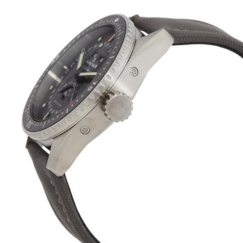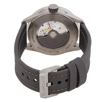 Grey titanium case with a grey nylon strap. Uni-directional rotating grey titanium bezel. Grey dial with black hands and index hour markers. Minute markers around the outer rim. Dial Type: Analog. Luminescent hands and markers. Complete calendar. One subdial displaying: moonphase. Blancpain Calibre 6654.P Automatic movement, containing 28 Jewels, bitting at 28800 vph, and has a power reserve of approximately 72 hours. Scratch resistant sapphire crystal. Screw down crown. Round case shape, case size: 43 mm. Buckle clasp. Water resistant at 300 meters / 1000 feet. Functions: full calendar, moon phase, date, day, hour, minute, second. Additional Info: original box, international warranty card, manual (complete accessories). Fifty Fathoms Series. Dive watch style. Watch label: Swiss Made. Blancpain Fifty Fathoms Automatic Grey Dial Men's Watch 5054-1210-G52A.