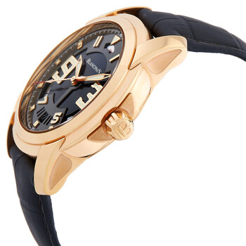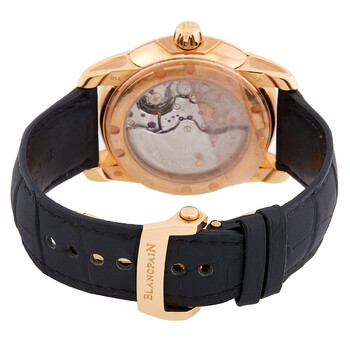 18kt rose gold case with a black alligator lined with rubber strap. Fixed 18kt rose gold bezel. Black dial with rose gold-tone hands and index- Arabic numerals hour markers. Minute markers around the outer rim. Dial Type: Analog. Date display at the 6 o'clock position. One subdial displaying: power reserve at the 12 o'clock position. Blancpain Calibre 13R5 Automatic movement, containing 36 Jewels, composed of 243 parts, bitting at 28800 vph, and has a power reserve of approximately 192 hours. Scratch resistant sapphire crystal. Round case shape, case size: 43.50 mm, case thickness: 13.4 mm. Band width: 23 mm. Water resistant at 100 meters / 330 feet. Functions: date, hour, minute, second, power reserve indicator. L-evolution Series. Luxury watch style. Watch label: Swiss Made. Item Variations: 8805 3630 53B, 8805.3630.53B, 8805363053B. Blancpain L-Evolution Automatic Men's Watch 8805-3630-53B.