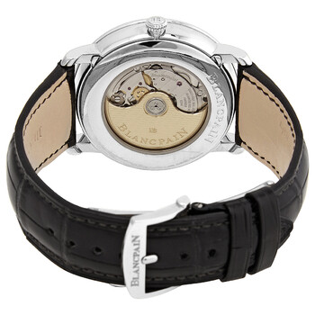 Blancpain Quantième Annuel GMT Stainless steel case with a black (alligator) leather strap. Fixed stainless steel bezel. White dial with silver-tone hands and Roman numeral hour markers. Dial Type: Analog. Date display at the 3 o'clock position, Day of the week display at the 2 o'clock position. Month display at the 4 o'clock position. 24 hours sub-dial. Blancpain caliber 6054F automatic movement with a 74-hour power reserve. Scratch resistant sapphire crystal. Pull / push crown. Transparent case back. Round case shape, case size: 40 mm, case thickness: 11.04 mm. Band width: 22 mm. Deployment clasp. Water resistant at 30 meters / 100 feet. Functions: date, day, month, hour, minute, second, 24 hour. Additional Info: original box, manual (complete accessories). Villeret Series. Luxury watch style. Watch label: Swiss Made. Blancpain VILLERET White Dial Unisex Watch 6670-1127-55B.