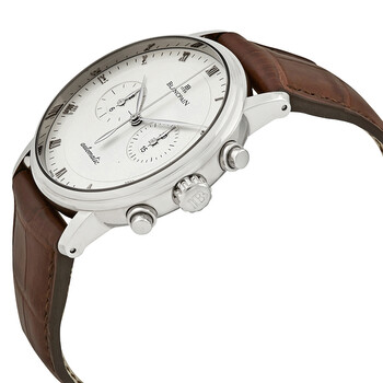 18kt white gold case with a brown (alligator) leather strap. Fixed 18kt white gold bezel. White dial with silver-tone hands and Roman numeral hour markers. Minute markers around the outer rim. Dial Type: Analog. Chronograph - two sub-dials displaying: 30 minute and 12 hours. Blancpain calibre 1188 automatic movement with a 40-hour power reserve. Scratch resistant sapphire crystal. Pull / push crown. Solid case back. Round case shape. Case size: 40 mm. Case thickness: 11.90 mm. Tang clasp. Water resistant at 30 meters / 100 feet. Functions: chronograph, hour, minute, second. Luxury watch style. Watch label: Swiss Made. Blancpain Villeret 18kt White Gold Chronograph Automatic Men's Watch 4082-1542A-55B.