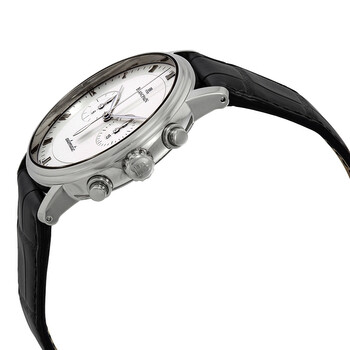 18kt white gold case with a black (alligator) leather strap. Fixed 18kt white gold bezel. Cream dial with white gold-tone leaf-style hands and Roman numeral hour markers. Minute markers around the outer rim. Dial Type: Analog. Chronograph - two sub-dials displaying: 30 minutes and 12 hours. Blancpain calibre 1188 automatic movement with a 40-hour power reserve. Scratch resistant sapphire crystal. Pull / push crown. Solid case back. Round case shape. Case size: 40 mm. Case thickness: 11.9 mm. Band width: 20 mm. Tang clasp. Water resistant at 30 meters / 100 feet. Functions: chronograph, hour, minute, second. Villeret Series. Luxury watch style. Watch label: Swiss Made. Item Variations: 4082 1542 55B, 4082.1542.55B, 4082154255B. Blancpain Villeret Chronograph Automatic 18 kt White Gold Men's Watch 4082-1542-55B.